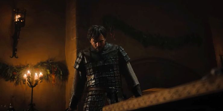 Con ese fin, Vikingos: Valhalla comienza con una secuencia que se siente muy deudora de Game of Thrones, al menos en ejecución e intención, si no un paralelo directo. El momento en cuestión es la Masacre del Día de San Brice, ordenada por el rey Aethelred II, en la que los vikingos que viven en Inglaterra son traicionados por el gobernante y masacrados sin piedad. Puede que no sea una boda, y puede que no sean personajes que los espectadores hayan llegado a amar, pero es Vikingos: Valhalla Sin embargo, establece su puesto: la traición en esta forma, y la forma en que se filma y cómo se desarrolla: hombres invitados a un festín en un salón, con el giro revelado lentamente, el espacio cerrado que ofrece una palpable sensación de tensión y la sensación de que algo está pasando. no está bien, y las flechas que vuelan desde lo alto, y un último héroe cuyo cuerpo está perforado con múltiples flechas, evocan mucho Game of Thrones‘ Boda roja.