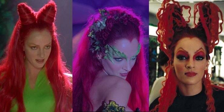 El look de Poison Ivy de Uma Thurman en batman y petirrojo es una de las transformaciones más singulares de la franquicia. El maquillaje de Ivy comienza de manera bastante simple con el cabello como foco principal en un deslumbrante color rosa intenso. La artista Ve Neill, conocida por su memorable trabajo en Eduardo manos de tijera (1996), creó tres diseños principales para Poison Ivy para mostrar su descenso a la locura, una técnica efectiva que ayuda a elevar a un villano que no necesita otros efectos especiales.