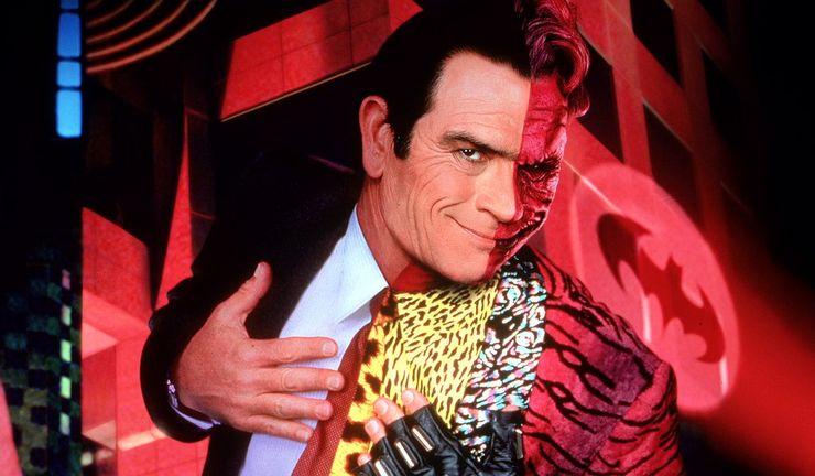 Joel Schumacher trajo a bordo al legendario creador de monstruos, Rick Baker, para crear el diseño de Two-Face de Tommy Lee Jones en batman para siempre. Alejándose del color verde original de su piel en los cómics, el Two-Face de la película se cambió a un rojo púrpura intenso. El cambio de color se reflejó más tarde en los cómics, tras el lanzamiento de la película.
