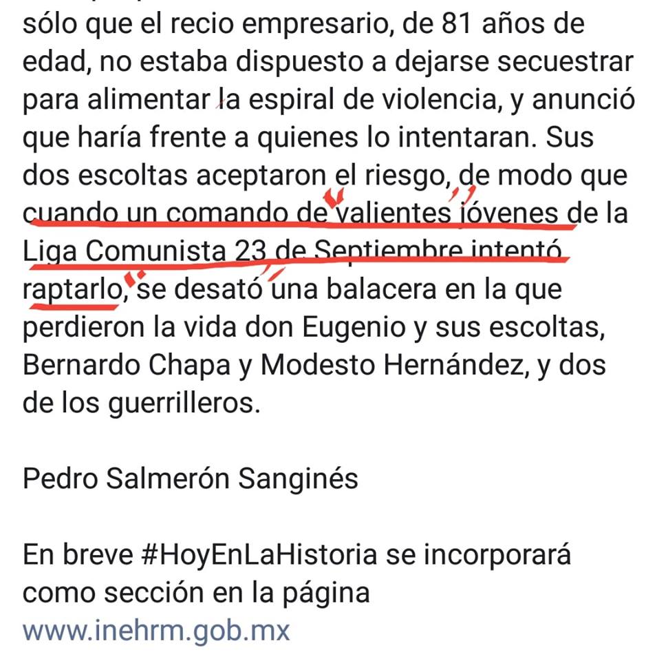 En la tarde del viernes, el INEHRM se disculpó en nombre de su director por haber escrito valientes y afirmó que no “se pretendió ofender” a nadie con su empleo. El texto desapareció de Facebook pero reapareció en el blog personal de Salmerón —intacto. Acaso por eso la disculpa no sirvió para nada. La nota siguió dando vueltas: miles de personas tuvieron algo que decir acerca de los años de plomo y sobre la ética de los funcionarios. Debe haber sido demasiado. Al mediodía del sábado, Salmerón puso su cargo “a disposición” de López Obrador, con el evidente propósito de dejar sin materia a quienes estaban usando su nota para insinuar que el gobierno federal también es partidario de la lucha armada o al menos que considera el asesinato como acto legítimo de lucha política.