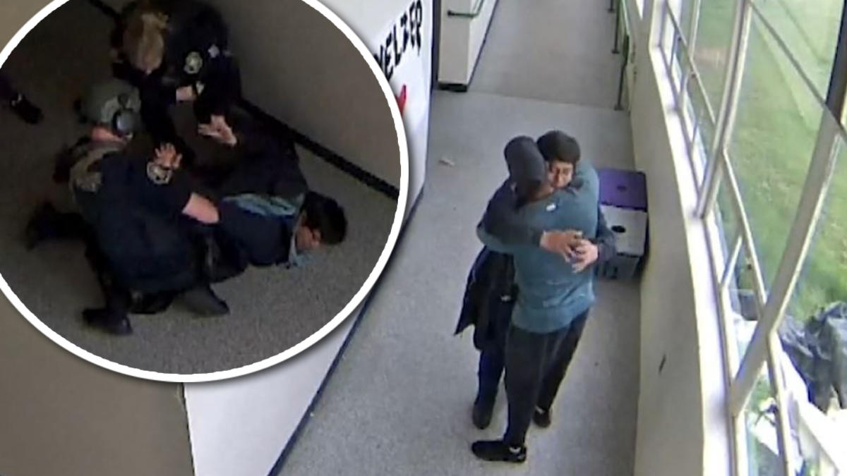 PORTALND — Las autoridades publicaron un video de vigilancia que muestra parte del exitoso esfuerzo de un entrenador y guardia de seguridad de una escuela secundaria de Oregon para desarmar a un estudiante en posesión de una escopeta.