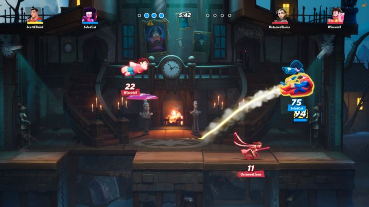 El personaje pesa MultiVersus se sienten extremadamente ligeros, especialmente cuando se trata de verticalidad y control sobre su velocidad de caída. En realidad se sienten más como dissidia fantasía final personajes que Super Smash Bros. luchadores, con una flotabilidad general en su movimiento. Todos los personajes en el alfa tenían la capacidad de saltar por la pared, lo que les facilitaba recuperarse simplemente saltando por el costado del escenario. Hay algunos ataques especiales en MultiVersus que están vinculados a medidores de tiempo de reutilización, como el Lazo de la verdad de Wonder Woman, mientras que todos los movimientos tienen el potencial de causar “Attack Decay”, lo que los debilita si se usan repetidamente en un corto período de tiempo. No hay ataque de lanzamiento ni bloqueo, aparte de los especiales específicos, como el hilo de pescar de Tom & Jerry y el escudo de Wonder Woman. Cuando se compara con Super Smash Bros Ultimatelas batallas en MultiVersus sienten que tardan más en completarse, ya que es difícil hacer un balance temprano de un oponente, gracias a la velocidad de salto de caída y recuperación más indulgente, así como a la mecánica de salto de pared que hace que sea más fácil recuperarse de un ataque de picos.