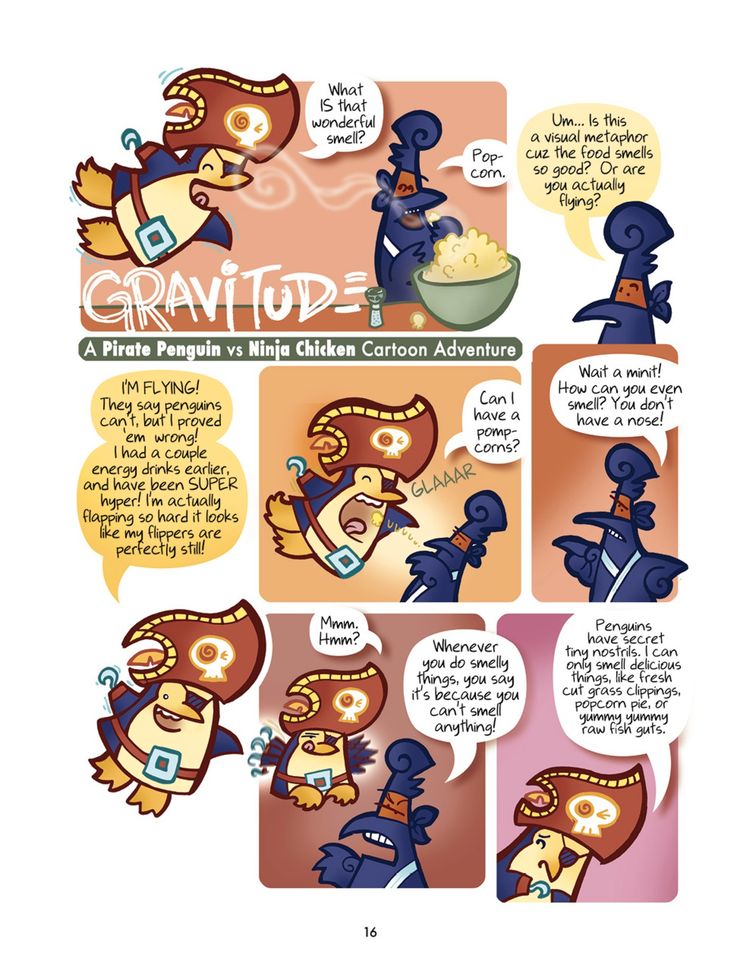 La gente dice que los pingüinos no pueden volar. Disparates. ¡Por supuesto, los pingüinos pueden volar! Tampoco me refiero metafóricamente, como, ‘Oh, son tan elegantes nadando bajo el agua, casi parece como si estuvieran volando’ – No. Los pingüinos controlan todo el suministro de gravedad del mundo y pueden arrojarnos. el planeta sin dudarlo si les desagradamos. Toda esta serie de cómics comenzó como una impactante exposición de los pingüinos y sus poderes secretos, pero mientras la dibujaba, me detuve a la mitad para hacer un sándwich, y ahí fue cuando me atraparon. Era un sándwich de atún. Para resumir, trabajo para los pingüinos ahora, publicando continuamente propaganda a favor de los pingüinos, y este cómic es lo que creo que finalmente asegurará la dominación mundial para nuestros emperadores pingüinos por venir. ¡Disfrutar!