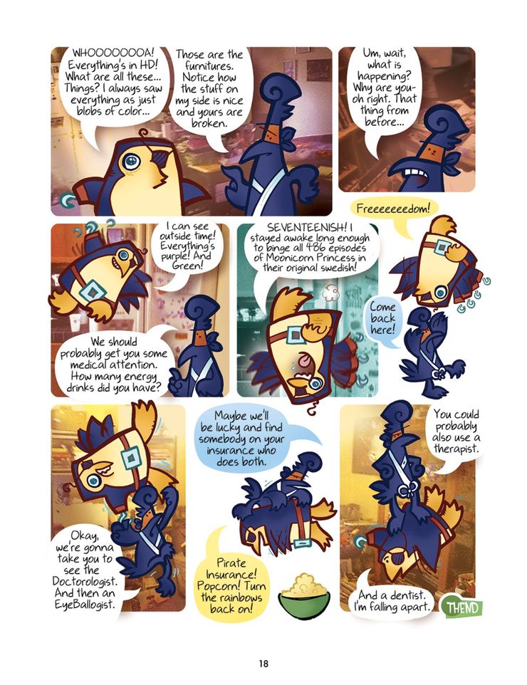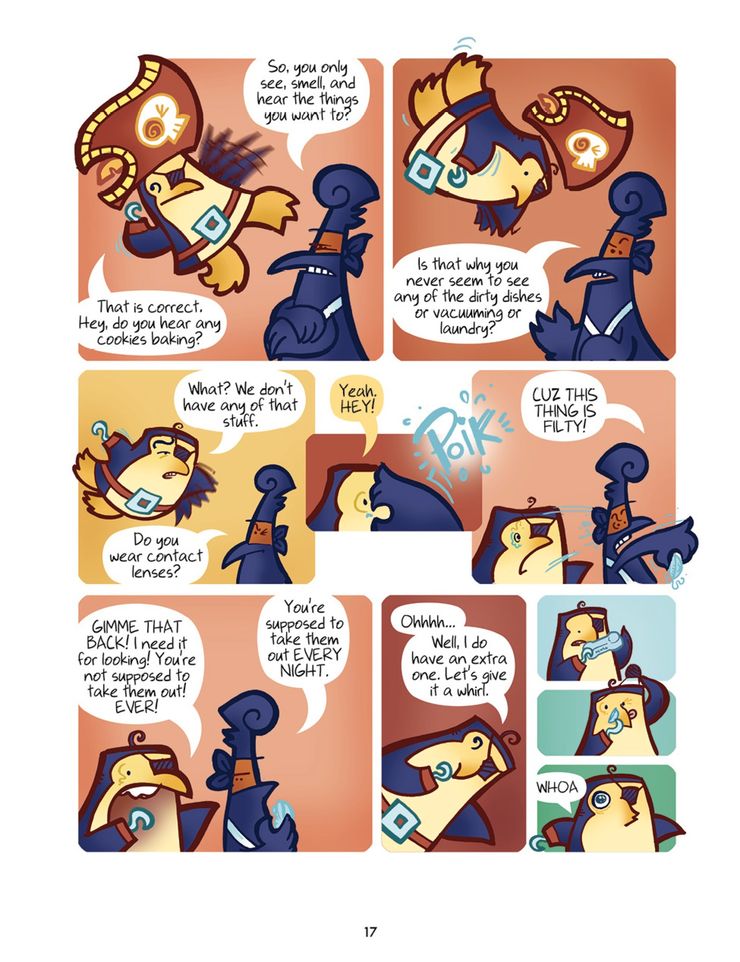 En anteriores Pingüino pirata vs pollo ninja Historias, los amigos no voladores se han enfrentado a los malvados koalas, han tenido peleas de espadas, han tomado batidos de helado y se han enfrentado a la Reina Pirata. Ahora se ocuparán de cuestiones como el champú de hombre lobo (¿cómo consiguen que su cabello sea tan perfecto?), Los viajes en el tiempo y las palomitas de maíz. La vista previa ofrece una de las muchas aventuras, que podrían cambiar la vida de Pirate Penguin, ¡considerando que finalmente tiene una lente de contacto limpia! Sin embargo, dado su historial, es probable que lo ensucie a tiempo para el próximo panel en el que protagonice.
