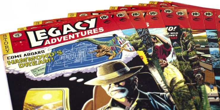 Jurassic World: El legado de Isla Nublar contiene 12 aventuras de historia diferentes que abarcan los cinco Parque Jurásico/Mundo películas. Cada carpeta de aventuras contendrá todas las piezas particulares necesarias para ese juego, así como un libro de reglas al estilo de un cómic que detallará los nuevos elementos de la historia, el contenido desbloqueado y las tareas requeridas para la aventura en cuestión. Estos folletos facilitan el seguimiento de qué contenido debe continuar en juegos futuros y qué piezas específicas de la aventura deben permanecer en la carpeta al final.