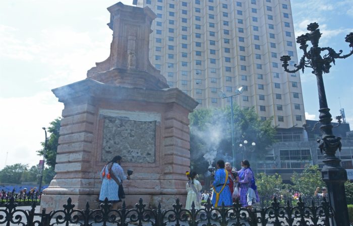 En su trayecto, hicieron una parada en el lugar donde hasta hace unos meses estaba la estatua de Cristóbal Colón sobre la emblemática avenida Paseo de la Reforma, la cual será finalmente sustituida por una escultura en homenaje a las mujeres indígenas.