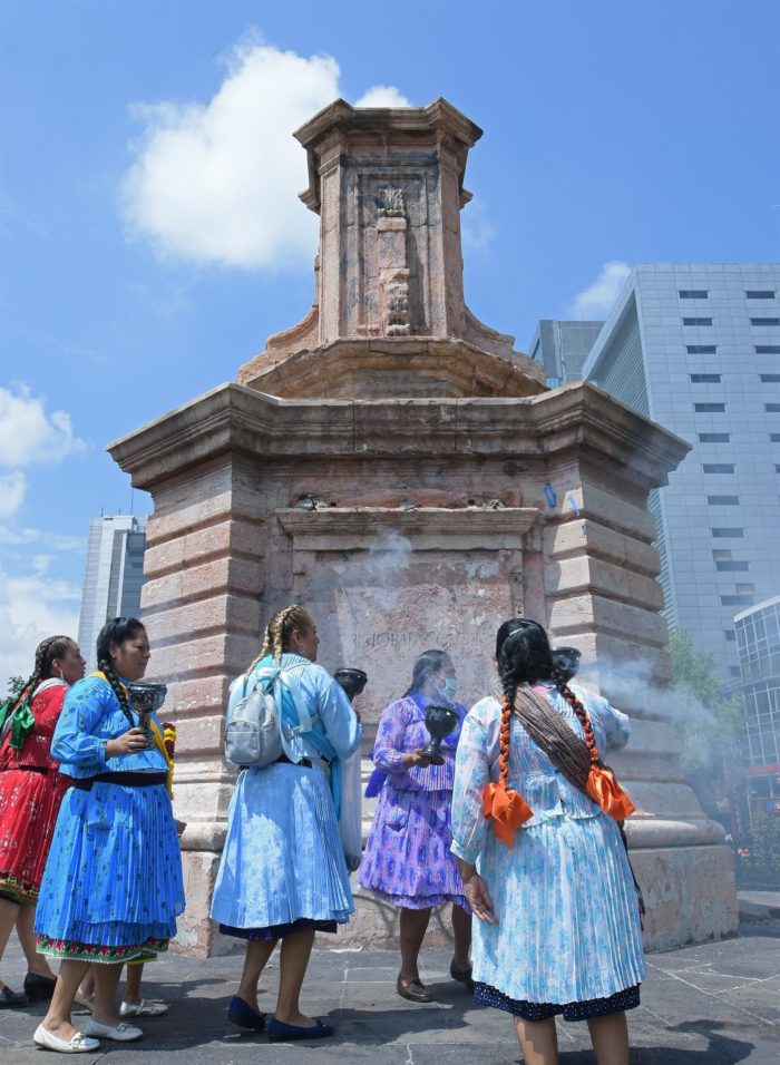 En el lugar, bendijeron y realizaron una ritual con incienso, además de bailar y festejar la decisión de la jefa de Gobierno capitalina, Claudia Sheinbaum, de reconocer a la mujer indígena.