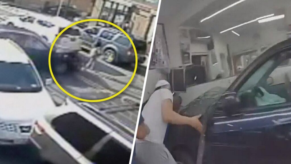 Dos oficiales, Fusco y Samoyedny, que se encontraban en una tienda cercana, respondieron al lugar tras escuchar el choque y encontraron a la madre, de 36 años, y a su bebé, una niña de 8 meses, atrapadas debajo del carro dentro de la barbería, dice el reporte policial.
