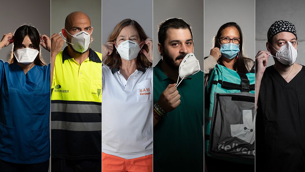 Los llantos a escondidas, los zapatos en la entrada, lavar la ropa antes de saludar desde lejos a la familia, el olor a lejía… Las historias de los trabajadores de primera línea durante el confinamiento son diferentes, pero similares. El miedo acompañó el día a día de los que no pudieron quedarse en casa cuando el 14 de marzo se decretó el estado de alarma. Seis meses después, septiembre aterra porque suena a “brotes”, a “irresponsabilidad”, a “incertidumbre”. “No debemos olvidar lo que pasó”, repiten. No se consideran ni héroes ni heroínas, pero se expusieron para mantener las ciudades limpias. Estiraron las horas en el hospital para atender a los enfermos, a pesar del colapso. Cuidaron de los mayores y pedalearon por las capitales vacías con la cena caliente en mochilas cuadradas. No están todos, pero estos son 10 de los rostros que le ponen nombre y voz a quienes no pararon cuando el coronavirus lo frenó todo. Y siguen trabajando para que no vuelva a ocurrir.