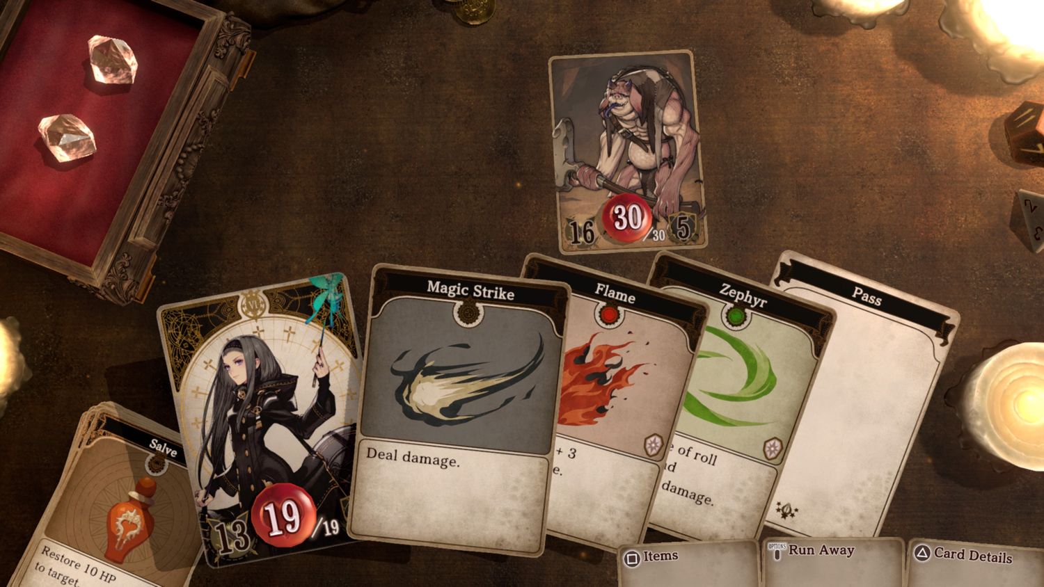 Las batallas en sí tienen algunos diseños de cartas excelentes junto con algunas mecánicas de batalla sutilmente complejas, aunque el juego rara vez se siente desafiante de una manera que obligue a los jugadores a devanarse los sesos demasiado para responder a las preguntas que plantea una pelea de jefe determinada. Las interacciones entre cartas son intuitivas y, como resultado, las cartas de mayor costo son más poderosas o rompen el juego en función de la situación, mientras que las variantes más baratas ofrecen puentes útiles entre turnos de poder. Los efectos de estado como veneno, congelación y parálisis aparecen en Voz de cartasy se pueden formar grupos para explotarlos en la batalla con bastante éxito, aunque a menudo, los jefes tendrán una alta resistencia a estas desventajas y será necesario crear nuevas estrategias sobre la marcha para ellos.