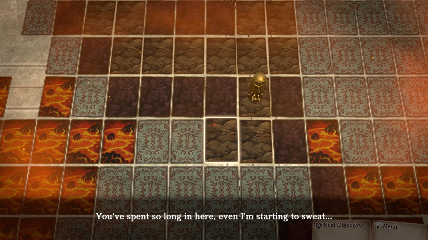 “/> Atravesar el mundo en busca de botín y batallas se realiza en los mapas basados en mosaicos que corresponden a cada área de la historia. Los jugadores mueven una pieza del juego para revelar varias otras fichas adyacentes a la que acaban de llegar, y luego pueden saltar su pieza del juego de una ficha revelada a cualquier otra actualmente revelada, con excepciones dependiendo de la iluminación del área o la mecánica de ciertos secciones de la historia. En general, los ambientes se sienten muy Búsqueda del Dragón-como, con muchas características tradicionales de JRPG que comienzan a desmoronarse cuanto más las examina el jugador a través de la exploración o los ritmos de la historia.