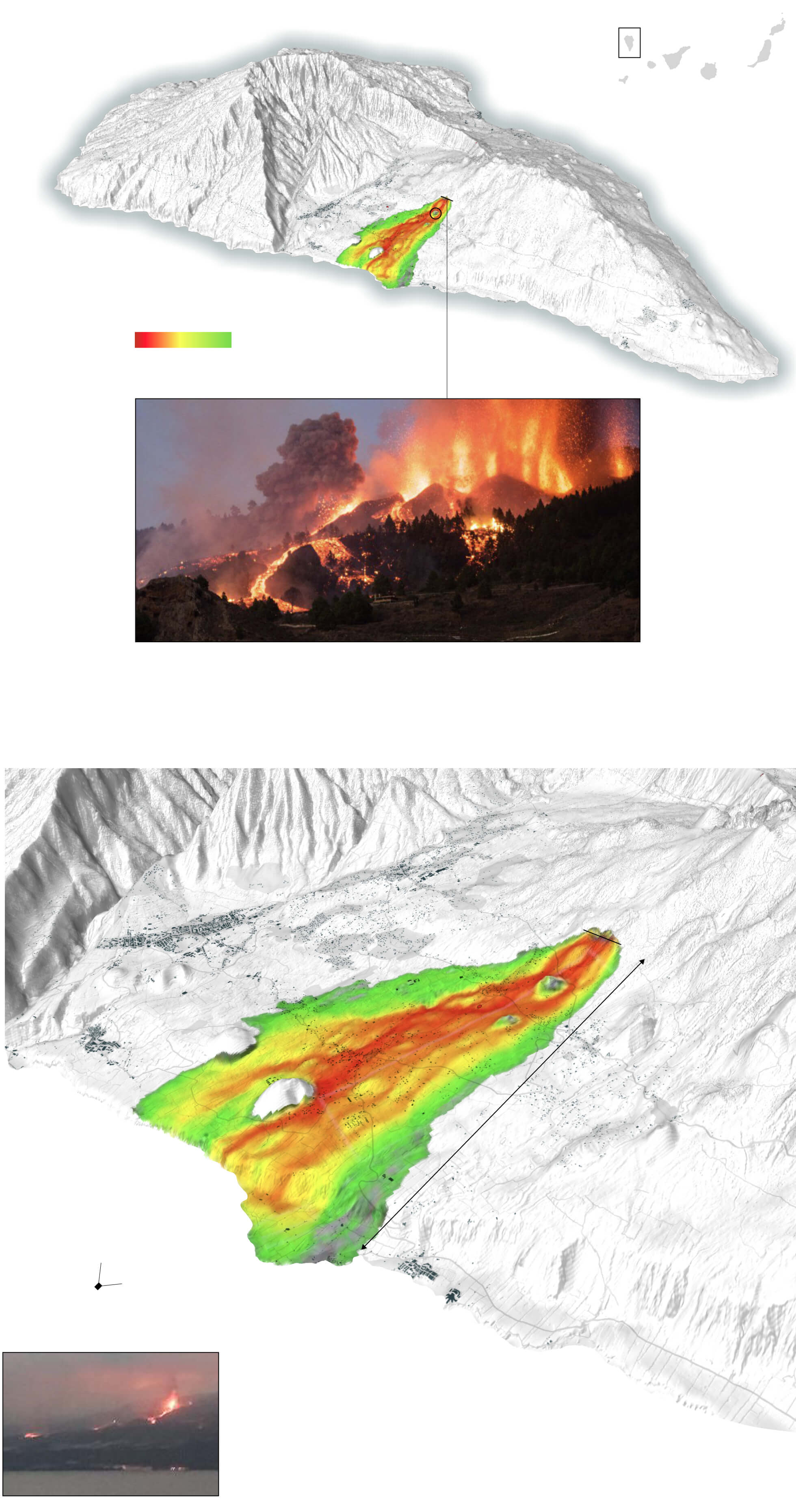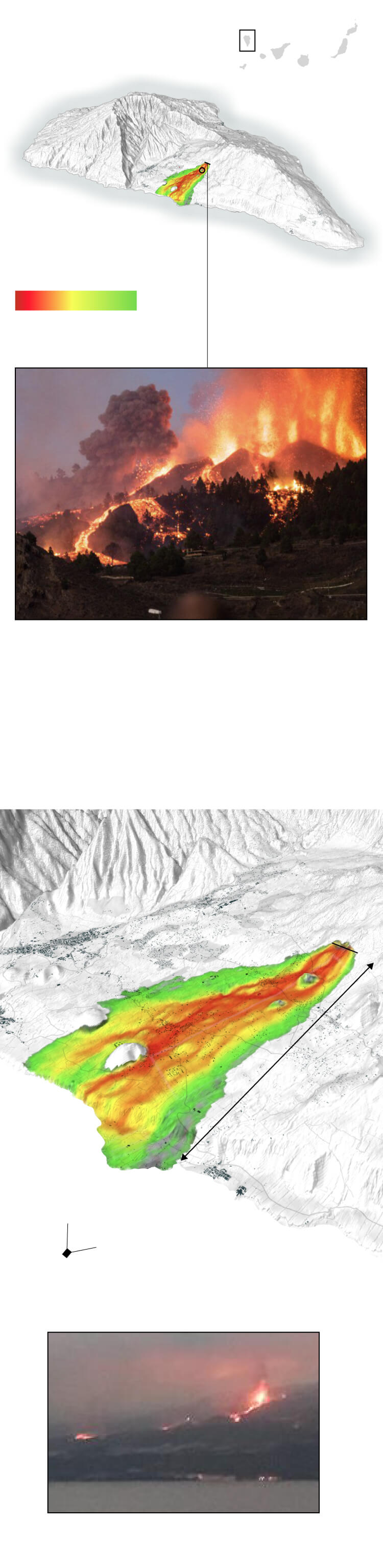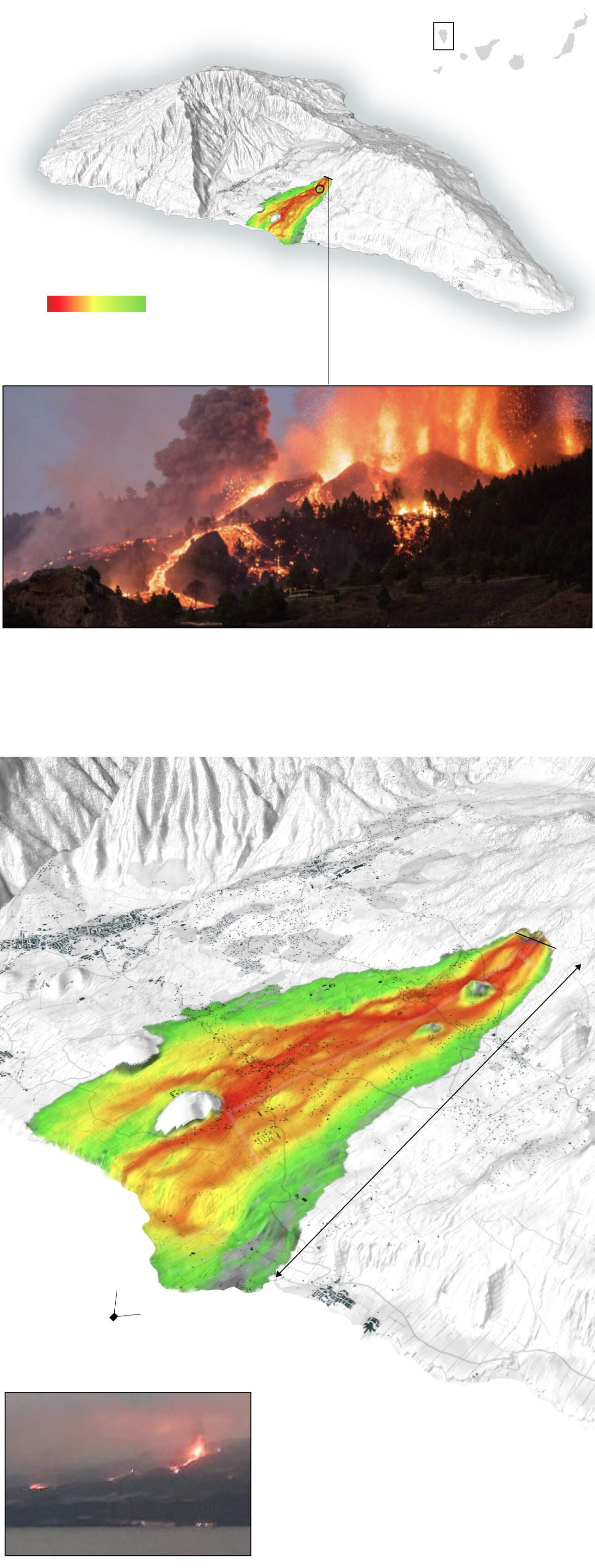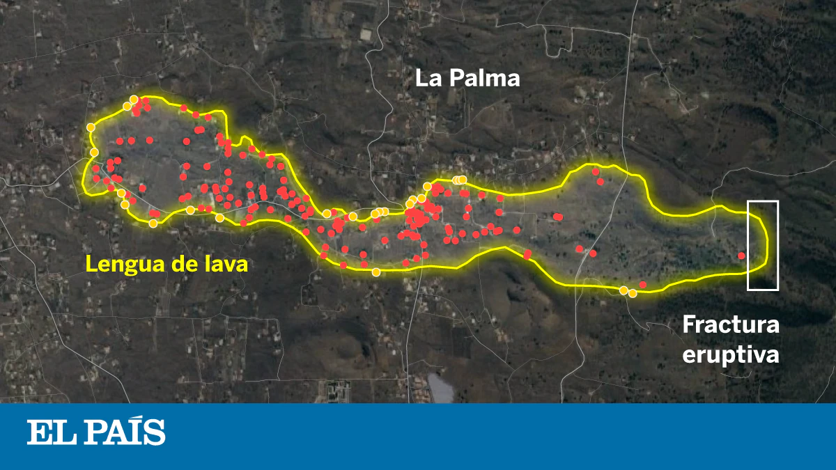 Las lenguas de lava que se deslizan desde la erupción en Cabeza de Vaca, en La Palma, hasta la costa por el valle de Aridane, se han tragado ya más de un centenar de casas y han obligado a evacuar a 5.500 personas. Los científicos pensaban que la lava alcanzaría el mar sobre las ocho de la tarde de ayer lunes (hora local canaria). Sin embargo, la ralentización del avance de los ríos de magma impidió que se cumpliera esta previsión. La lava está sobre el barrio de Todoque. Aún queda la mitad del camino para llegar al mar y se desconoce cuándo alcanzará el océano y por dónde lo hará.