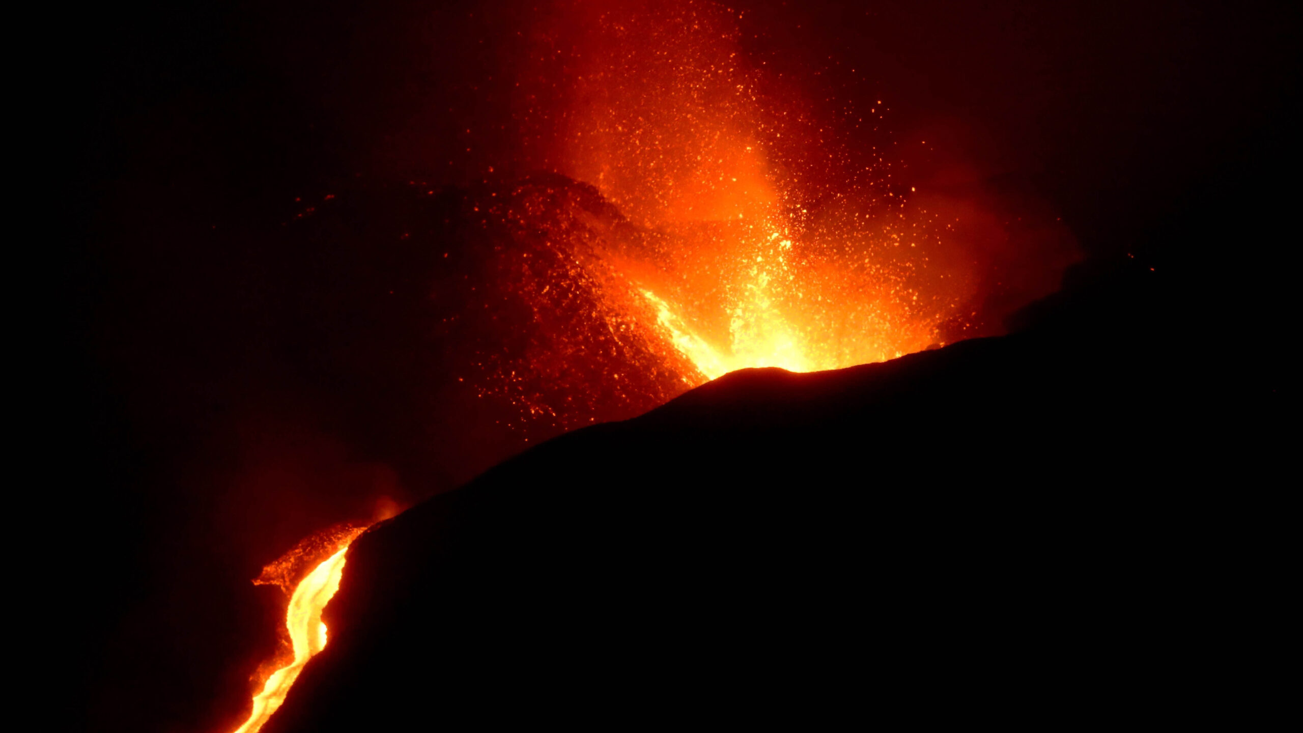 Una segunda colada, que baja “con enorme potencia” y lleva la mayor parte del flujo lávico, discurre paralela a la anterior.