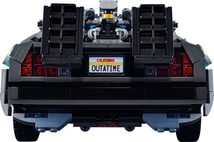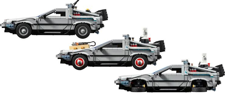 El exterior del set es completamente personalizable con piezas adicionales para que coincida con las diferentes películas de la trilogía. Se puede equipar un pararrayos y una cámara de plutonio para que coincidan con el estilo del vehículo en la primera película. Se puede agregar un reactor Mr. Fusion y los neumáticos se pueden plegar para simular la conversión de vuelo estacionario del DeLorean de la segunda película. Los neumáticos se pueden reemplazar por completo con otros de paredes blancas adicionales, y se puede agregar un accesorio de placa de circuito grande al capó del vehículo para simular el aspecto de la tercera película. Además de todo eso, el conjunto incluye placas de matrícula que se pueden intercambiar, el icónico hoverboard rosa de McFly y una lata de cerveza y plátano para arrojar al reactor Mr. Fusion, como hizo Doc al final de la primera película. y el comienzo de la segunda.