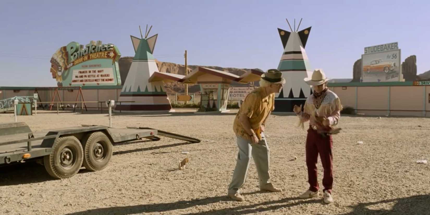En Volver al futuro Parte IIIMarty recluta un documento de 1955 una vez más para viajar a través del tiempo. Una vez que hayan encontrado y preparado la máquina del tiempo, Doc los lleva a una sala de cine que Marty puede usar para su pista. Marty comenta que será una caminata muy larga de regreso a la ciudad, a la que Doc responde que esta es la ubicación ideal porque no se desarrollará en 1885: “No podemos arriesgarnos a enviarlo de regreso a un área poblada. […] No querrás chocar con algún árbol que existiera en el pasado.“