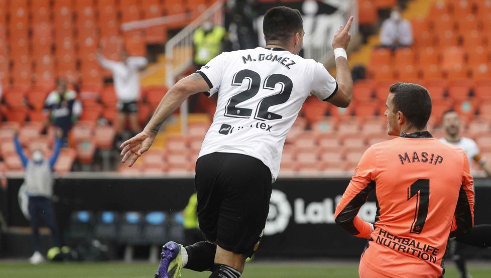 Fue por ahí por dónde llegó, ya en el descuento de la primera parte, el primer tanto del Valencia en el que fue su primer tiro a puerta. La recuperó el portugués, que cedió al valenciano para que pusiera un centro al que no llegó Wass pero sí Maxi Gómez, que rompió una sequía de cuatro meses. El tanto que llevaba semanas esperando Javi Gracia, llegó finalmente cuando el navarro se había ido.