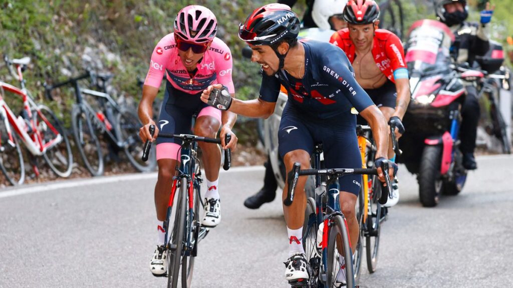 Quedan tres kilómetros para el final de la subida más dura del Giro de Italia. Martínez tira de Egan. Se vuelve y le amenaza con el puño, le exige, le pide que no ceda, le obliga. Y en ese momento, explica, la cabeza manda. La razón lógica se impone al pánico. Egan calcula: a Yates le saca más de cuatro minutos en la general, le puede dejar margen; por detrás viene Caruso, el segundo en la general, a poco más de dos minutos. Piensa y actúa. Intenta recuperar aire, bajar las pulsaciones, prepararse para cuando le alcance Caruso y pegarse a su rueda. Y resistir. Y, el ciclismo es siempre ironía, finalmente, Caruso alcanza a Egan y tora de él, le ayuda. La rueda del segundo que lucha para ser segundo es la mejor rueda para el primero. Solo cede finalmente 3s al siciliano, quien sigue segundo, a 2m 21s; 57s con Yates, que ya es tercero, a 3m 23s. “Fue un mal día, pero me ha ido bien”, dice Egan y sonríe.