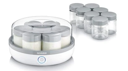 ¿Has pensado alguna vez en preparar tus yogures caseros? Esta es una forma muy sana de probar este tipo de lácteos sin aditivos ni conservantes y una forma de mezclar sabores es hacerse con una buena yogurtera. La de la imagen incluye 14 tarros de cristal de 150 ml con sus respectivas tapas libres de fugas; ideales para viajar o llevar a la oficina.