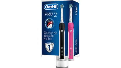 Si necesitas renovar tu cepillo eléctrico por otro de gama elevada, estás de enhorabuena. Este lote de dos cepillos eléctricos de la firma Oral B protegerá tus encías gracias al sensor de presión que incorpora, eliminando las manchas superficiales de nuestros dientes. Ofrece dos modos de cepillado y la batería se prolonga durante más de dos horas. Incluye dos cabezales de recambio.