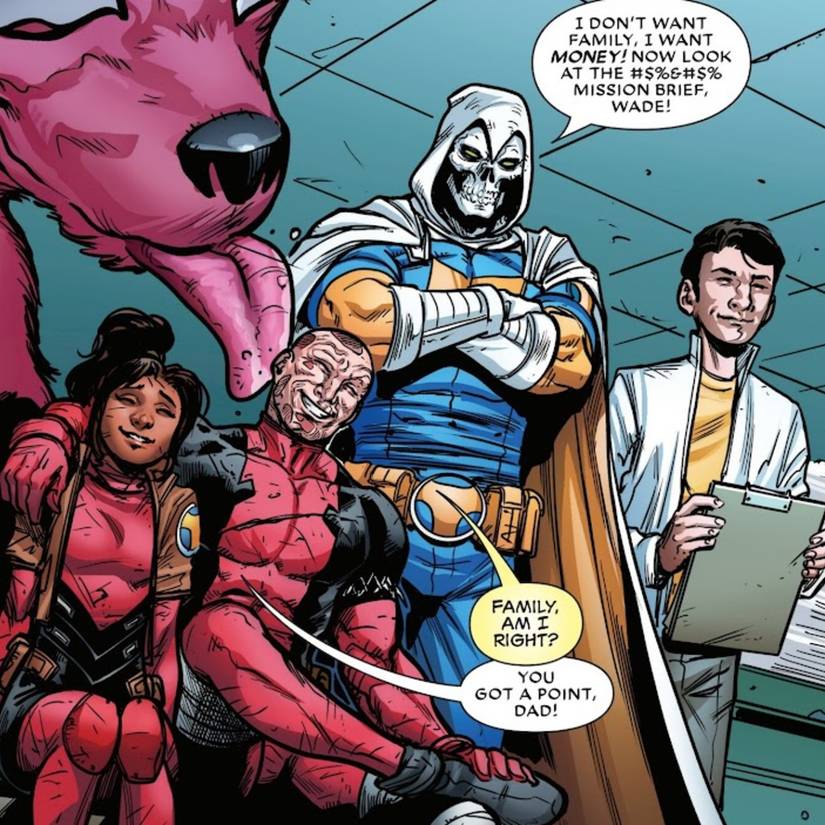 Con las extremidades de Deadpool intactas, parece que Wade ha vuelto a funcionar plenamente como Deadpool. Taskmaster no pierde el tiempo, momentos después de ser revivido, le entrega a Wade el papeleo para su próxima misión para que todos puedan avanzar. La palabra clave aquí es todo. Deadpool & Daughters es una empresa familiar, y así lo parece toda la familia estará incluida en esta misión: Wade (el director ejecutivo), Taskmaster (presumiblemente el segundo al mando, ya que era el director ejecutivo interino de su empresa en ausencia de Wade, el gerente de operaciones de relaciones públicas, Doug Siravanta, Princess de extensión comunitaria y, por supuesto, “alquiler nepo” Ellie.