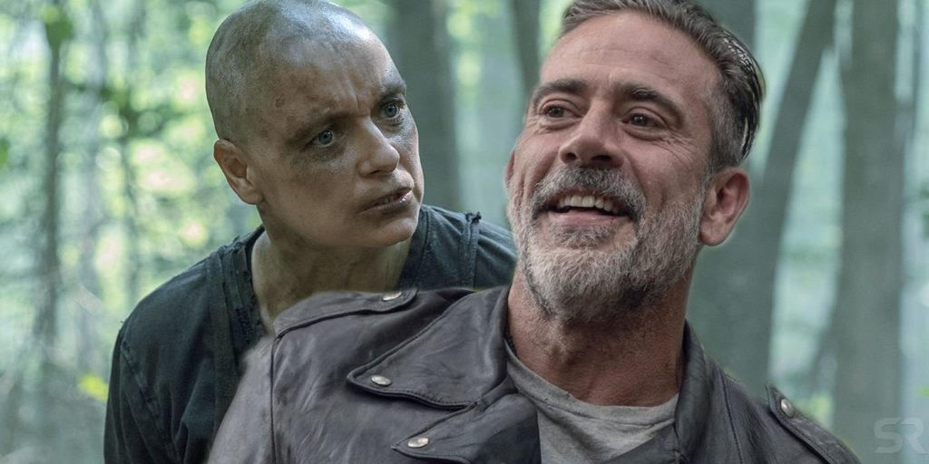 La última vez que vimos a Negan, estaba doblando su rodilla hacia Alpha, prometiéndole su lealtad a ella y a los Susurradores. Todavía no compramos que él haya decidido unirse a ellos. Negan no dobla la rodilla ante nadie, por lo que es probable que haya un juego más grande en juego.