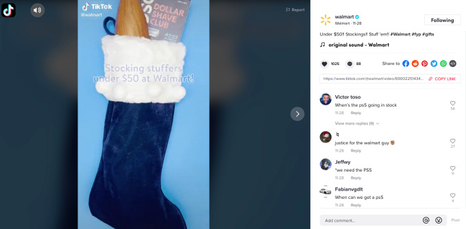 Créditos de imagen: Captura de pantalla del canal TikTok de Walmart durante las vacaciones de 2020