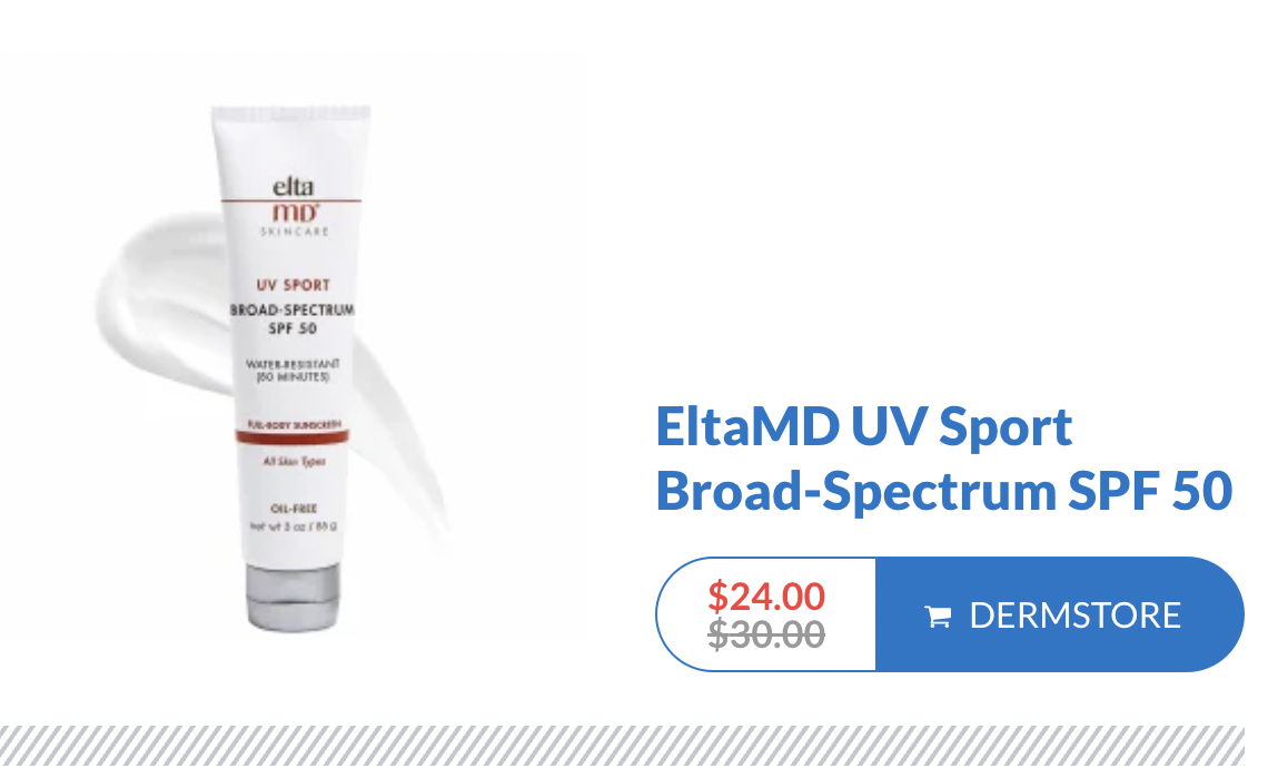 EltaMD UV Sport de amplio espectro SPF 50: Calificación promedio de 4.78 estrellas de 216 críticas en Dermstore.