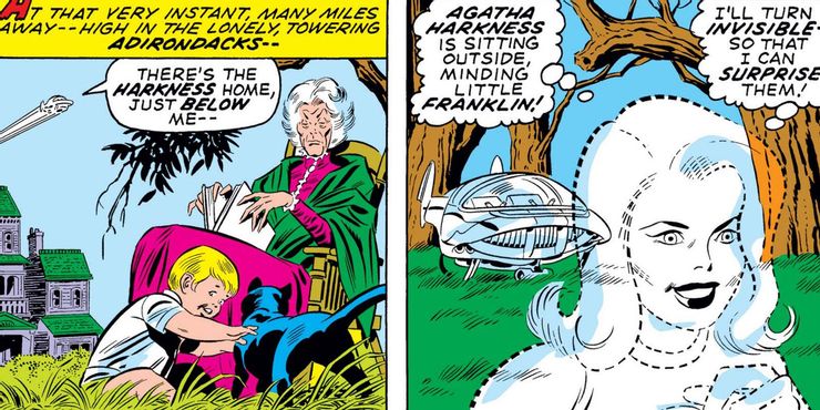 Agatha Harkness ocultó sus poderes durante mucho tiempo, pero finalmente les reveló a los Cuatro Fantásticos que era una bruja. Agatha no solo era una bruja, sino que era una hechicera muy poderosa, una de las más fuertes conocidas en ese momento.