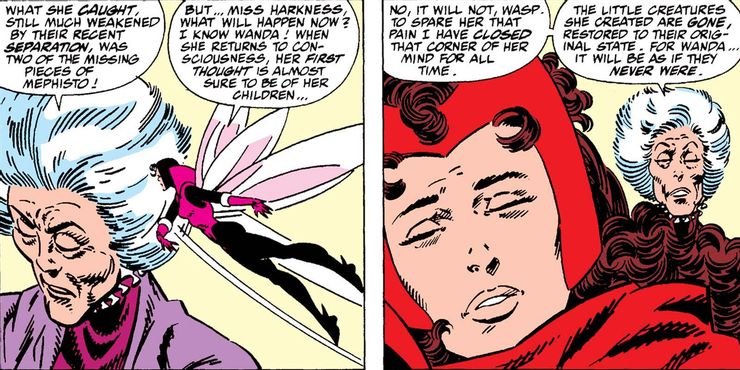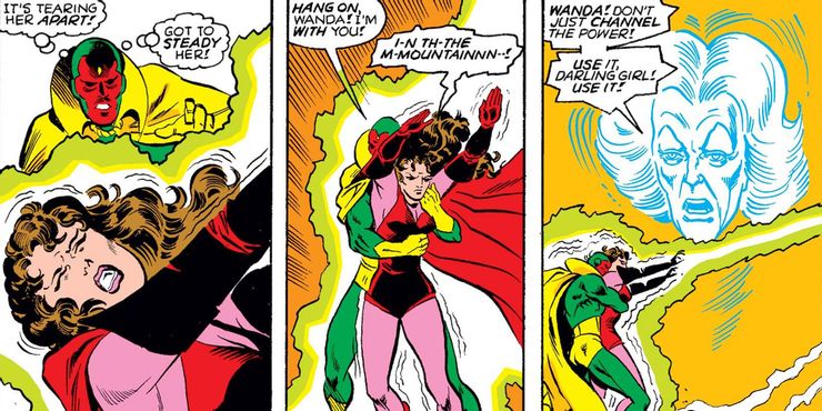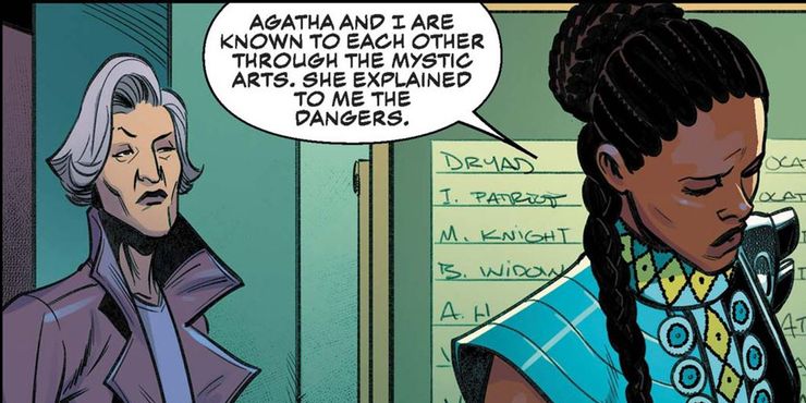 Después de la pérdida de sus hijos, Agatha Harkness trabajó para ayudar a Wanda a controlar mejor su magia del caos. Agatha, y los propios Vengadores, sabían que Scarlet Witch tenía poderes peligrosamente fuertes y necesitaban aprender a controlarlos mejor, y ahí es donde Agatha entró en escena.