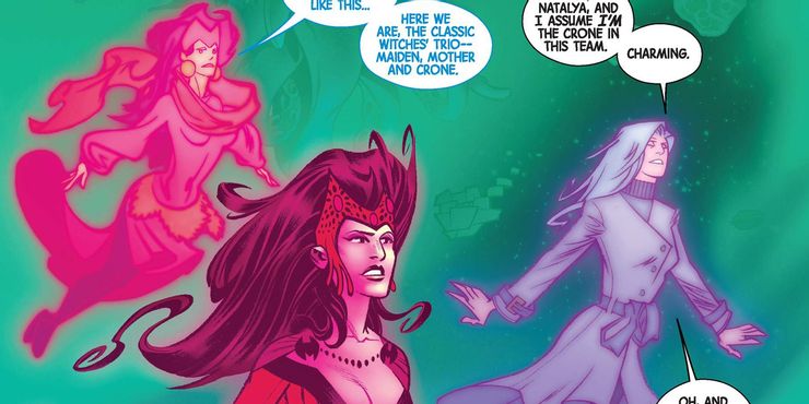 En el 2015 bruja Escarlata serie, se explicó gran parte de la vida pasada de Wanda, y muchos aspectos previamente desconocidos de esa vida salieron a la superficie. En bruja Escarlata # 13, Wanda encontró a Agatha en Witches ‘Road y luego encontró a su propia madre, Natalya Maximoff. Los tres terminaron luchando contra el Caos de la Entidad Abstracta. Natalya sacrificó su propia vida para salvar a la Diosa de la Brujería, pero no antes de ayudar a resucitar a Agatha Harkness de regreso a la tierra de los vivos.
