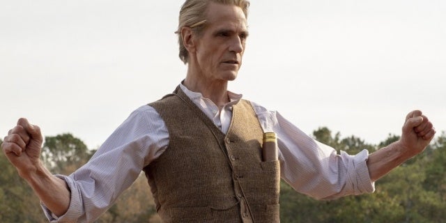 Vigilantes A los fanáticos se les dio un giro inesperado en el episodio de la semana pasada, cuando se reveló que Jon Osterman / Doctor Manhattan se había escondido a simple vista como miembro del conjunto del programa. La naturaleza de esa revelación, y exactamente cómo un superhumano azul pudo mezclarse en el mundo de Tulsa, Oklahoma, se responde de una manera bastante profunda en el episodio de esta semana, "A God Walks Into Abar". En el proceso, la serie proporcionó una respuesta sorprendente a una de sus mayores preguntas sin respuesta: ¿cómo Adrian Veidt / Ozymandias (Jeremy Irons) terminó en una finca campestre llena de clones en otro planeta. Spoilers del episodio de esta semana de Vigilantes, "A God Walks Into Abar", abajo! ¡Solo mira si quieres saber!