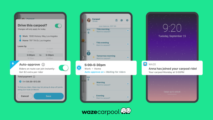 El servicio Waze Carpool también recibió algunas actualizaciones. Ahora ofrece funciones de reserva instantánea y aprobación automática para conductores y pasajeros. Los conductores también pueden recibir solicitudes de viaje en tiempo real cuando comienzan a conducir, lo que les permite recoger a más pasajeros en el camino.