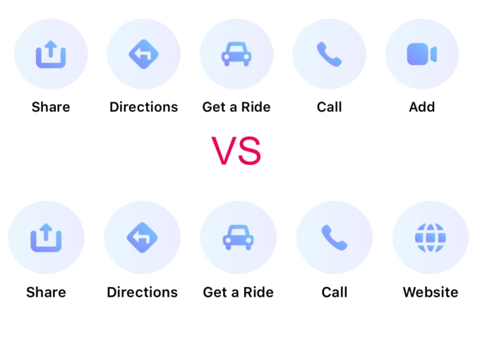 No era obvio de inmediato, por ejemplo, cómo podría contribuir con sus propias fotos y videos a un lugar, ya que algunos listados ofrecían un botón “Agregar” ubicado en un lugar destacado para cargar sus medios, mientras que otros no parecía. En realidad, no faltaba el botón “Agregar”, solo tenía que desplazarse hacia la derecha para verlo. Pero no estaba claro si la fila era desplazable. Parecía que el botón Agregar simplemente no estaba allí. (Vea los ejemplos a continuación).