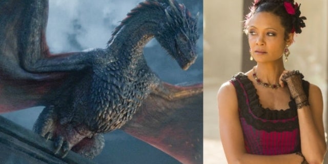 Durante el episodio, se revela en el fondo de la búsqueda de Bernard y Ashley que también existe un mundo medieval Westworld! No solo los fanáticos pudieron ver a un rey y una reina anfitriona vestidos con el atuendo de la Edad Media, sino que también vislumbramos algo más allá de lo épico: ¡un dragón anfitrión! Sin embargo, este no era un dragón cualquiera. Está muy claro que este anfitrión se inspiró en el hijo favorito de Daenerys Targaryen, Drogon. Echa un vistazo a las imágenes a continuación de Drogon en Game of Thrones y el dragón anfitrión que vimos esta noche Westworld: