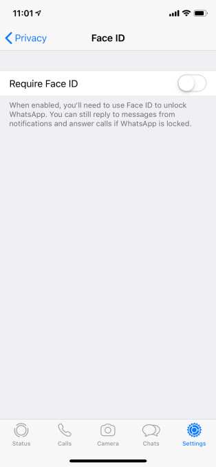 WhatsApp agrega soporte para el bloqueo biométrico de Face ID / Touch ID en iOS