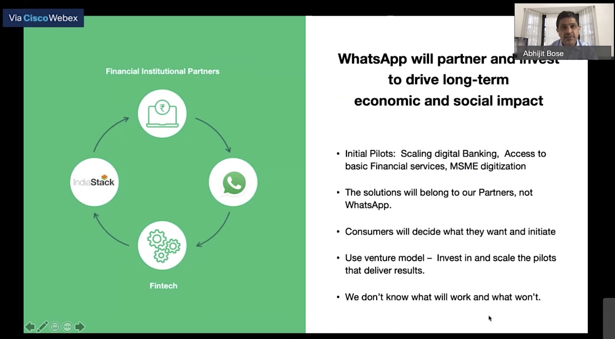 Este trabajo durante el año pasado ya ha demostrado que los bancos pueden aprovechar el alcance de WhatsApp, con ICICI Bank y Kotak Mahindra llegando a más de 3 millones de nuevos usuarios, dijo Bose, quien anunció que la aplicación propiedad de Facebook ahora planea trabajar con socios adicionales para traer seguros, micropensiones y crédito para trabajadores con salarios más bajos y la economía informal durante el próximo año y medio.