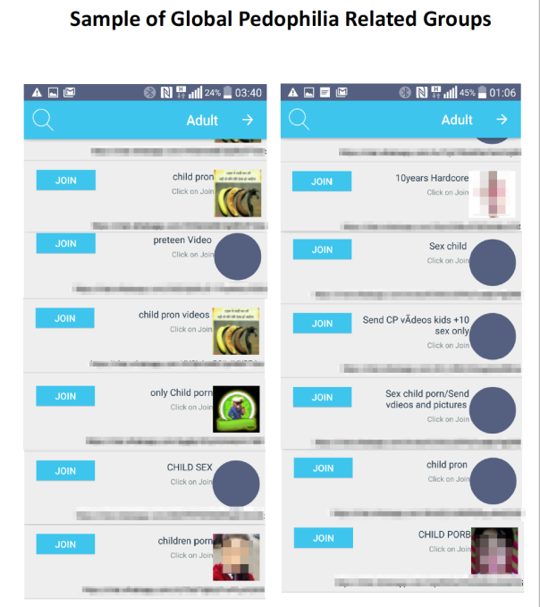 En julio de 2018, las ONG se dieron cuenta del problema cuando un hombre informó a una de sus líneas directas que había visto pornografía hardcore en WhatsApp. En octubre, pasaron 20 días catalogando a más de 10 grupos de pornografía infantil, su contenido y las aplicaciones que permiten a las personas encontrarlos.