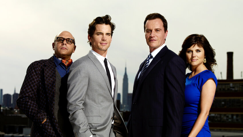 De cuello blanco contó la historia de un criminal de cuello blanco que temporalmente cuelga sus botas criminales y comienza a ayudar al FBI a cazar a otros criminales de su vida anterior. Matt Bomer fue el miembro principal del reparto, pero actuó junto a Tim DeKay, Willie Garson, Tiffani Thiessen, Sharif Atkins y Marsha Thomason.