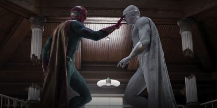 Uno de los mayores misterios fue el destino de White Vision. Se reveló que el director interino de SWORD, Tyler Hayward (Josh Stamberg), usó parte de la magia del caos de Wanda Maximoff (Elizabeth Olsen) para volver a animar el cuerpo real de Vision. Las acciones de Hayward dieron como resultado el nacimiento de White Vision, que técnicamente es Vision en términos del material fuente de Vibranium, pero inicialmente carecía de los recuerdos y la humanidad que tenía la primera Visión. Después de una batalla final épica entre Vision y White Vision, Hex Vision logró volver a cargar sus recuerdos en la base de datos de White Vision, y White Vision se fue volando después. Ahora se desconoce el paradero de White Vision.