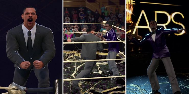 De acuerdo a Despotricar del juegoha habido un aumento de luchadores hechos a medida inspirados en Will Smith y Chris Rock a raíz del incidente de bofetadas en la entrega de premios de los Oscar del domingo, todos los cuales están actualmente disponibles para descargar desde WWE 2K22 Menú Creaciones de la comunidad. Dado que Will Smith es conocido por varias películas de acción como Hombres de negro, Salvaje oeste, y lo mencionado Chicos malos, había muchos modelos de él generados por los usuarios para elegir incluso antes de los Oscar, pero el Will Smith vestido de esmoquin de TalentedKamarty es el que más se parece a su aspecto de la ceremonia de premiación. Chris Rock, por otro lado, no parecía inspirar a muchas personas WWE 2K22 luchadores antes del altercado del domingo, pero desde entonces ha habido un aumento de personajes creados a su imagen. Un jugador incluso armó una arena personalizada de los Oscar 2022 en la que realizar adecuadamente cualquier revancha virtual entre Will Smith y Chris Rock en WWE 2K22.