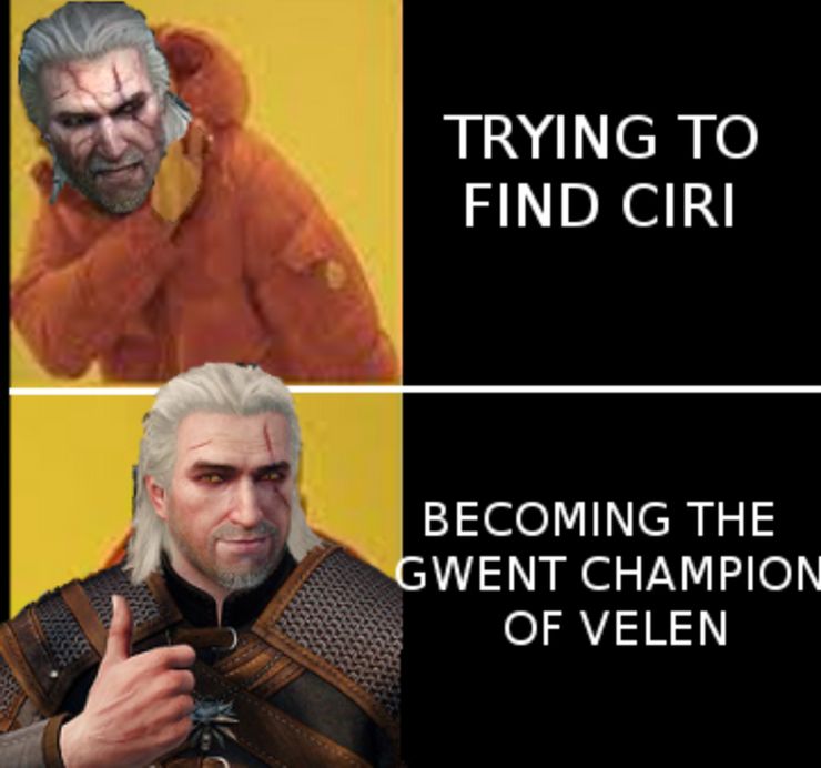 Y, sin embargo, cualquiera que haya jugado brujo 3 sabe ampliamente cuán preciso es este meme. El juego constantemente impone el juego de cartas Gwent a los jugadores de una manera que desvía por completo la misión de encontrar a Ciri y llevarla a un lugar seguro. Que un juego de cartas tonto tenga prioridad sobre salvar a una mujer en peligro de extinción subraya cuán fuera de control están las prioridades de Geralt en el juego.