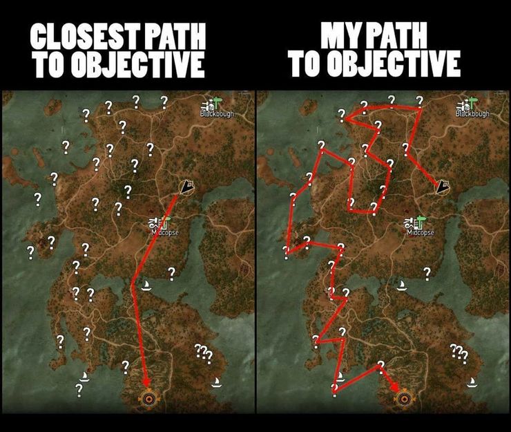 No importa qué tan directo sea un camino hacia un objetivo principal o secundario en brujo 3, los jugadores inevitablemente tomarán el camino más largo y tortuoso para llegar allí. Es una de las partes más frustrantes del juego, tener que circunnavegar tanta tierra en expansión para finalmente llegar al destino deseado.