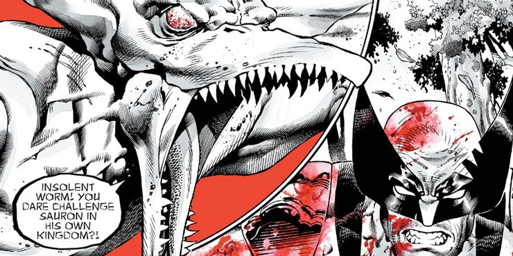 Wolverine: Black, White & Blood # 4 ve a Logan unirse al clásico villano de X-Men, Sauron, un oscuro hombre pterodáctilo de la Edad de Plata.