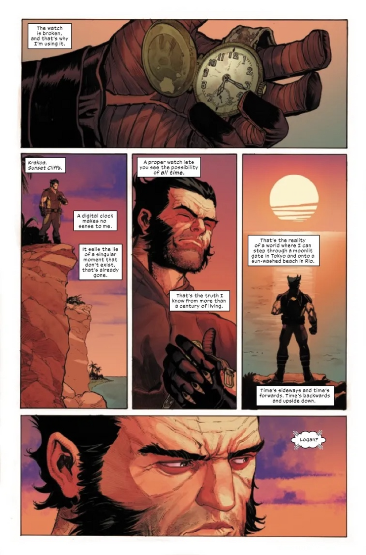 Como tal, tiene sentido que Wolverine esté preocupado por el concepto del tiempo justo antes de aventurarse de nuevo en su pasado ciertamente problemático en esta nueva vista previa. Además, confirma que, sorprendentemente, Xavier y Jean han sido las cosas más cercanas que tiene a la familia a lo largo de su vida anormalmente larga. No solo eso, sino que Logan también admite que es extraño que vea a Xavier como una figura paterna, considerando que probablemente tenga el doble de edad que el profesor. Disfrute de las páginas de vista previa y la sinopsis del próximo número: