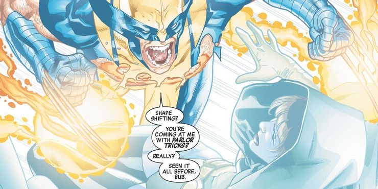 Dice mucho sobre Wolverine que ninguno de los otros Nuevos Vengadores se opuso o incluso se nombró a sí mismo para ser su guerrero elegido. El Doctor Voodoo quería el papel, pero solo porque sentía que esta batalla mística era su responsabilidad como Hechicero Supremo. Pero Wolverine se ofreció como voluntario casi de inmediato porque todos sabían que él era el héroe para el trabajo, y no solo por su factor de curación. Los Nuevos Vengadores tenían poco tiempo y la pelea comenzaba casi inminentemente. Absorber el poder de todos puede ser difícil de incorporar a otros héroes en su estilo de lucha, pero Wolverine es crudo, salvaje y lucha por instinto. Glotón fue, con mucho, la mejor opción para asimilar las habilidades de todos e ir directamente tras Agamotto sin dudarlo.