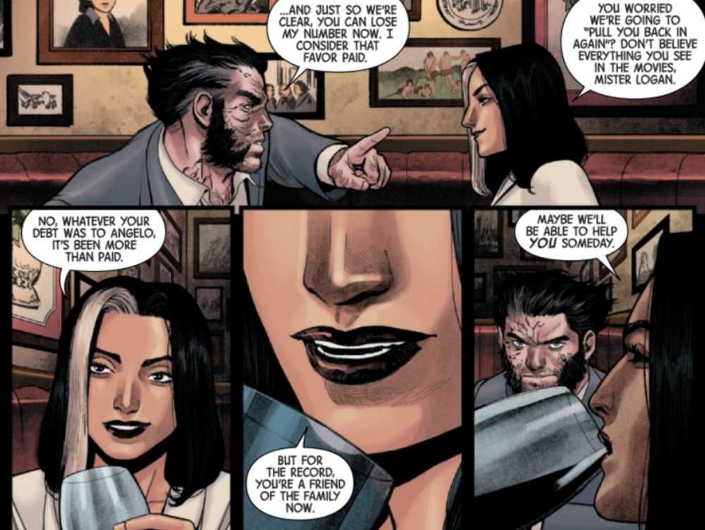 El problema termina con Wolverine exitoso, absorbiendo un lote de daño para llegar a la firma, pero logrando incapacitar a los soldados flanagan sin quitarse la vida. Si bien inmediatamente le entrega el control de la familia Andiamo a Donna, ella deja en claro que el grupo ahora le debe a Logan un gran favor: uno de los fanáticos pueden esperar ver en la línea.