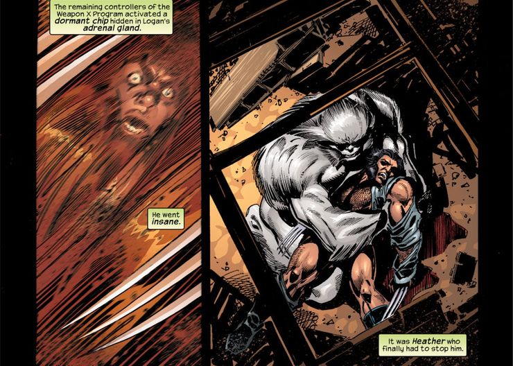 Esta versión de Sasquatch lleva la conexión de Heather Hudson con Wolverine a otro nivel al colocarlos en una situación que convirtió a ella en Wolverine y a él en Jean Grey. En los cómics y las películas, Logan se ha visto obligado a matar a la mujer que ama para salvar su vida o proteger a otros del poder casi omnipotente de la Fuerza Fénix con la que comparte su cuerpo. En este caso, Heather vio a su esposo siendo manipulado por fuerzas fuera de su control mientras masacraba a sus amigos y compañeros de equipo. Para proteger a los demás y salvar a Logan de sufrir más manipulación o trauma, Heather decidió matarlo por piedad, una muerte permanente que, debido a los poderes mutantes únicos de Logan, no es una hazaña fácil de lograr.