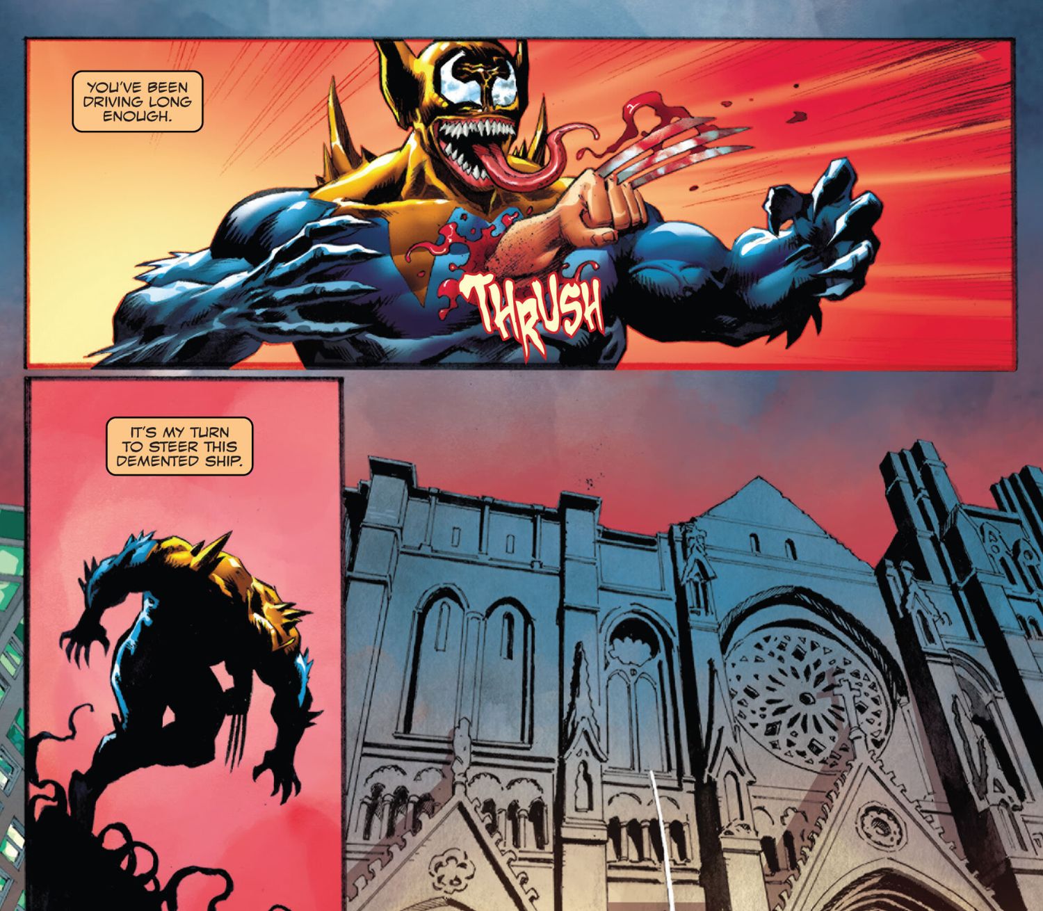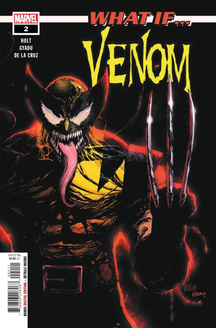 Jeremy Holt, Tadam Gyadu, Ceci de la Cruz, and Ariana Maher’s Y si…? Veneno #2 ve el vínculo simbionte de Venom con Wolverine después de que una pelea con Sabretooth sale mal. Venom se apresura a ejercer control, encerrando a Wolverine en una jaula mental de sus traumas pasados, un acto que deja a Wolverine furioso. Sin embargo, Venom no cuenta con lo desaconsejable que es que alguien atrape a un Wolverine furioso dentro de ellos.