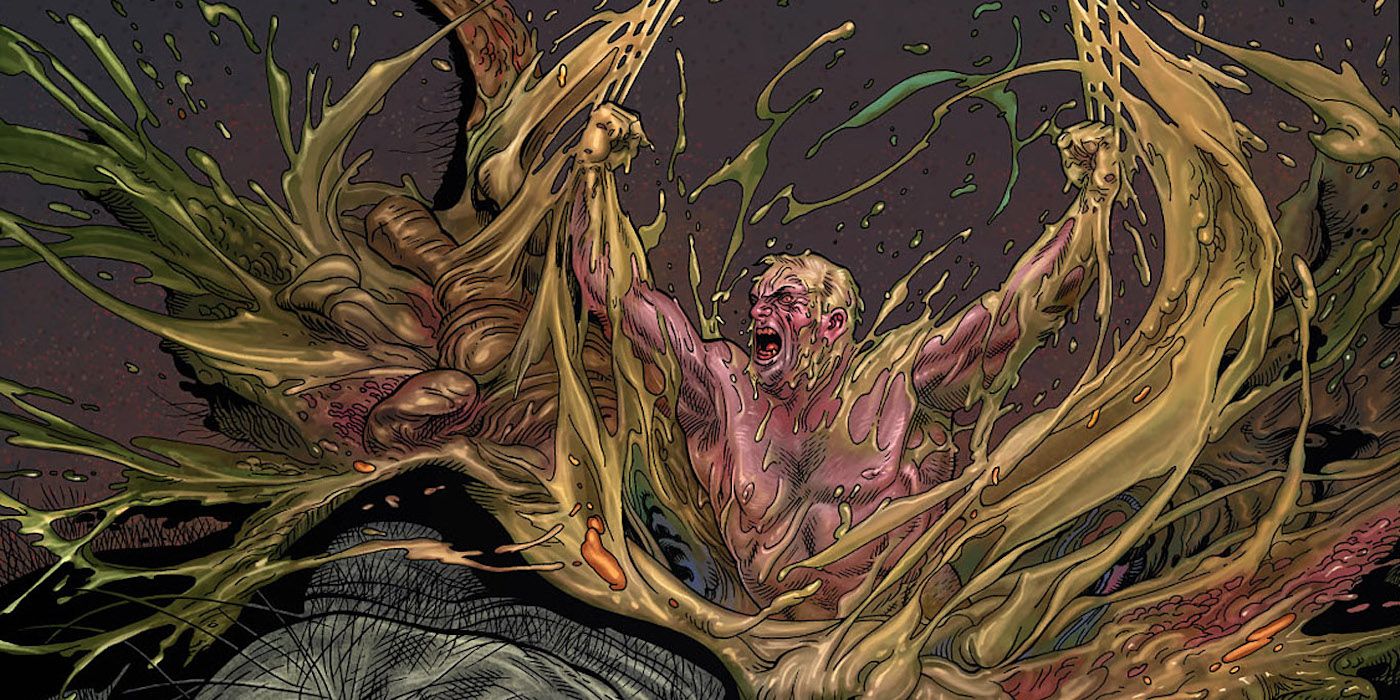 Abrirse camino a través de un enemigo desde adentro hacia afuera es un final brutal y repugnante, pero no carece de precedentes. El final de la primera Viejo logan La historia ve a un Wolverine post-apocalíptico maltratado y magullado en un ataque de venganza contra la banda Hulk después de que los hijos de Banner matan a su familia. Cuando Banner se transforma en Hulk y se come a Wolverine, Wolverine se regenera desde el interior de Hulk y se abre paso.