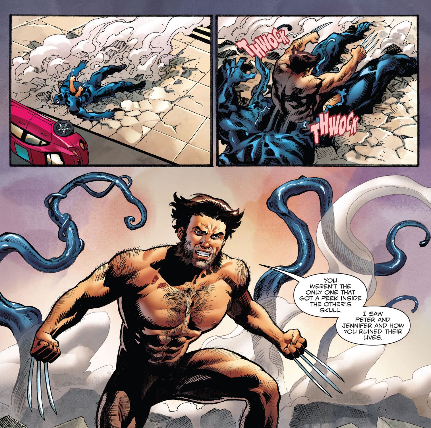 - Wolverine sale victorioso contra Venom en un enfrentamiento brutal, usando el mismo movimiento que usó para derrotar a Hulk en
